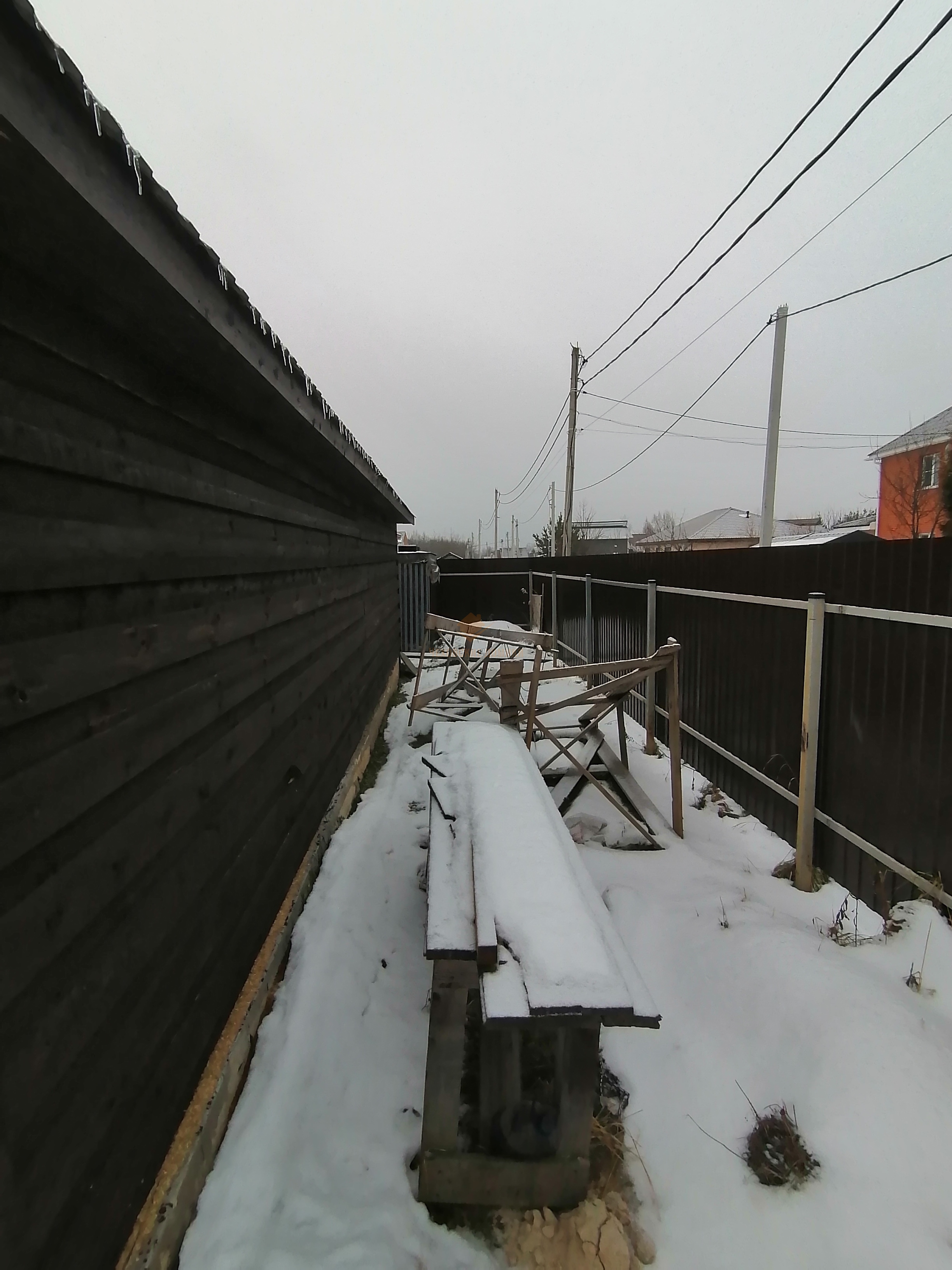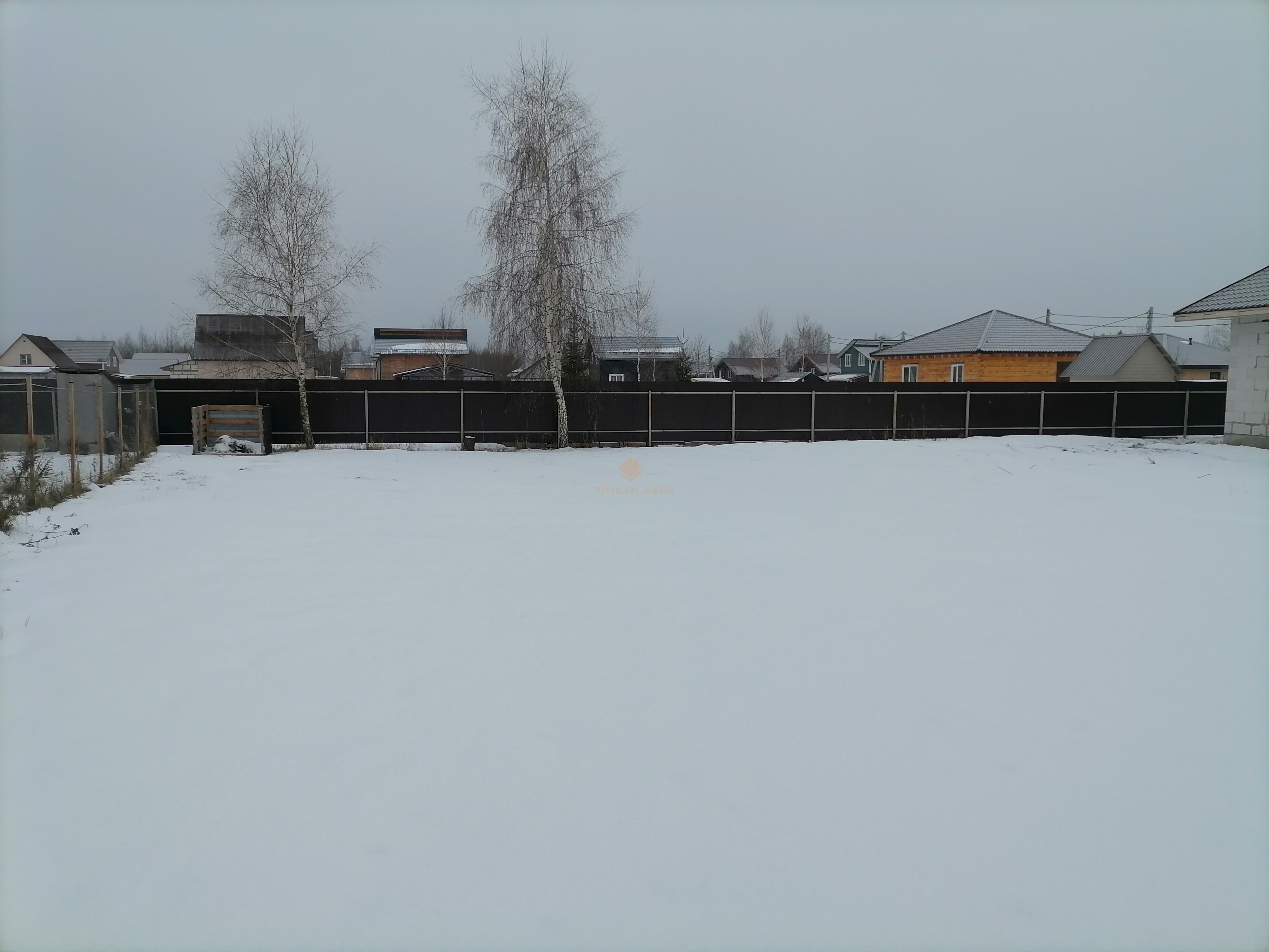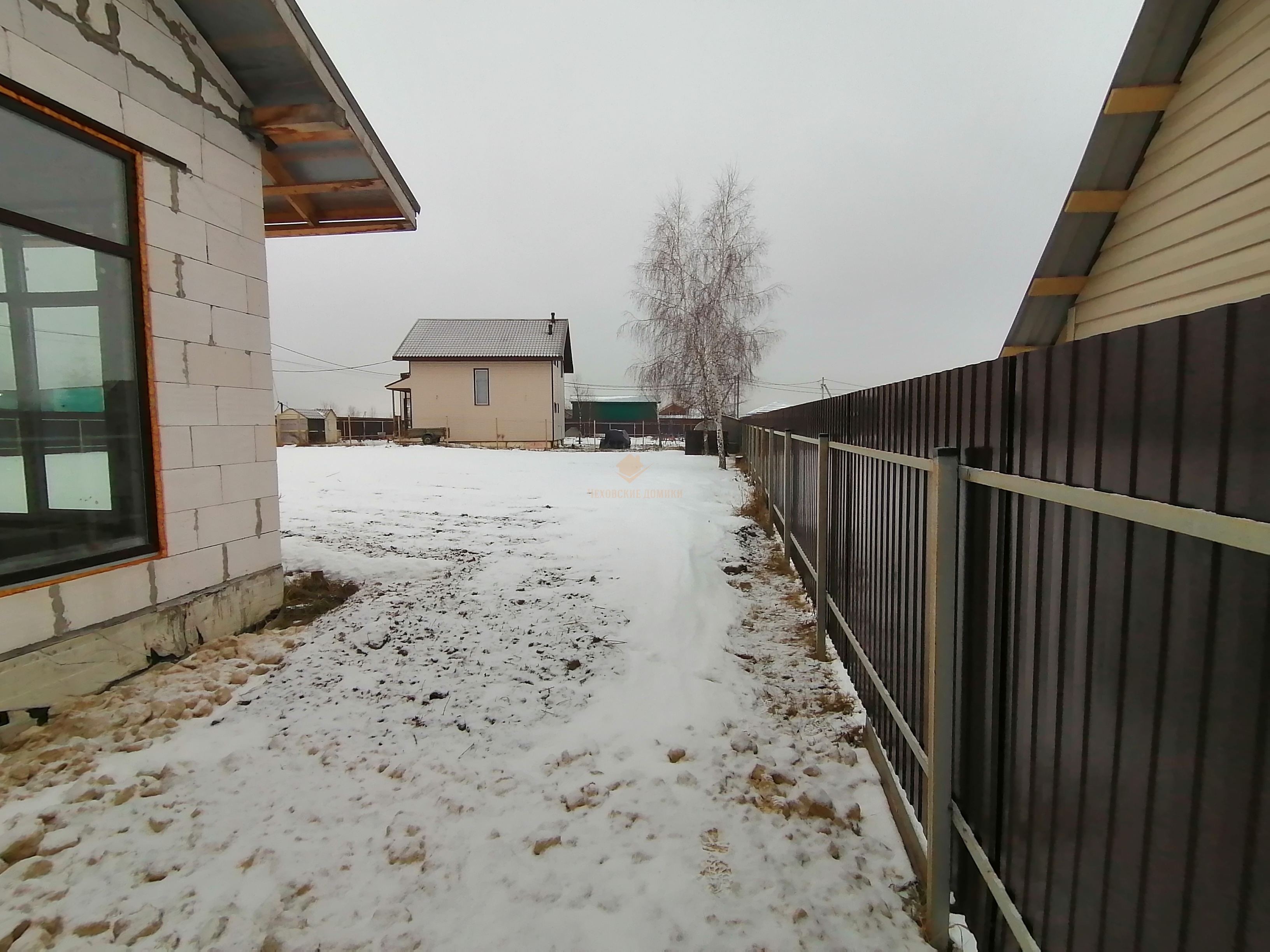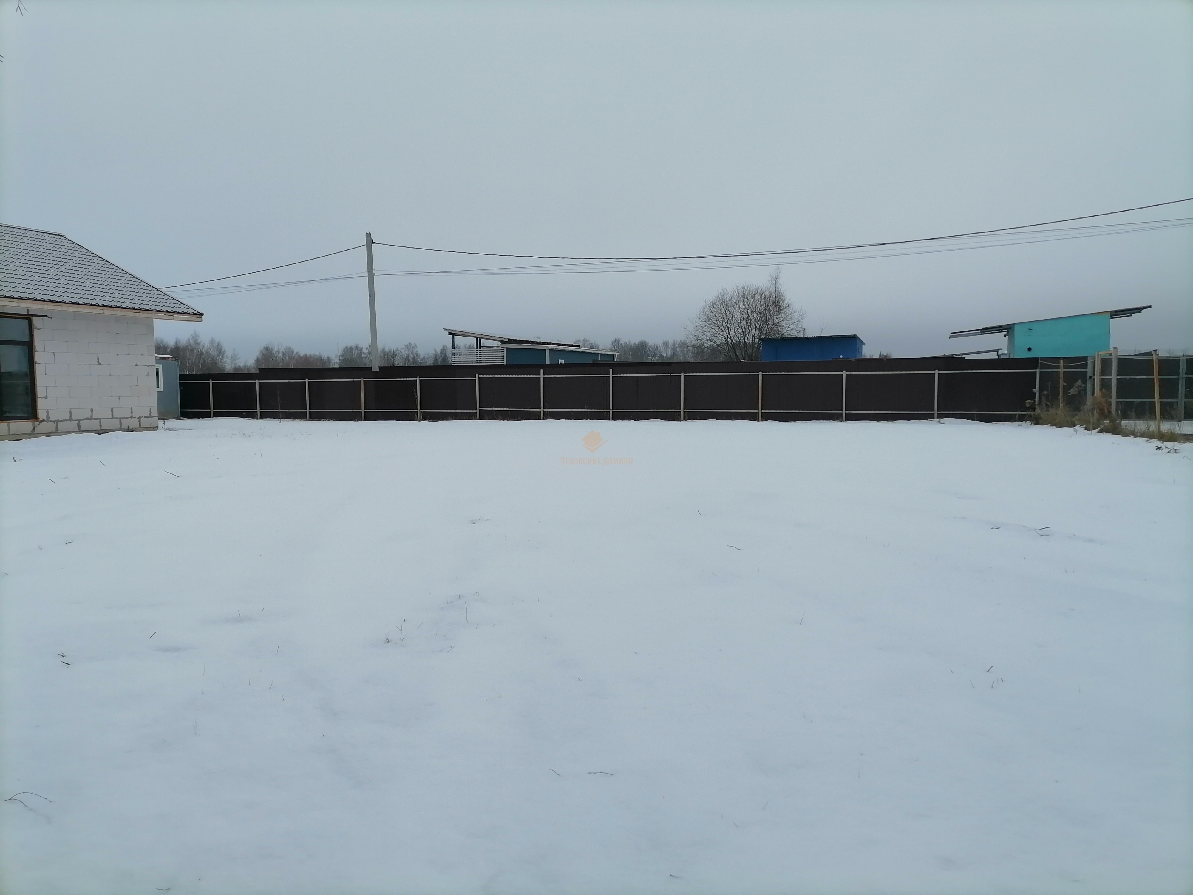 Участок ровный, огорожен профлистом, что обеспечивает безопасность и уединение. Электрические откатные ворота добавляют удобства и стиля.