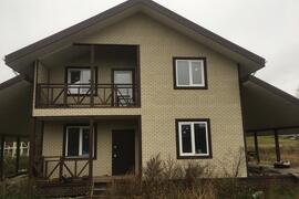 Дом построен по каркасной технологии на свайном железобетонном фундаменте. С одной стороны дома оформлена под крышу парковка на 2 автомобиля, которую можно сделать полностью закрытой. С другой стороны пристроена открытая веранда.