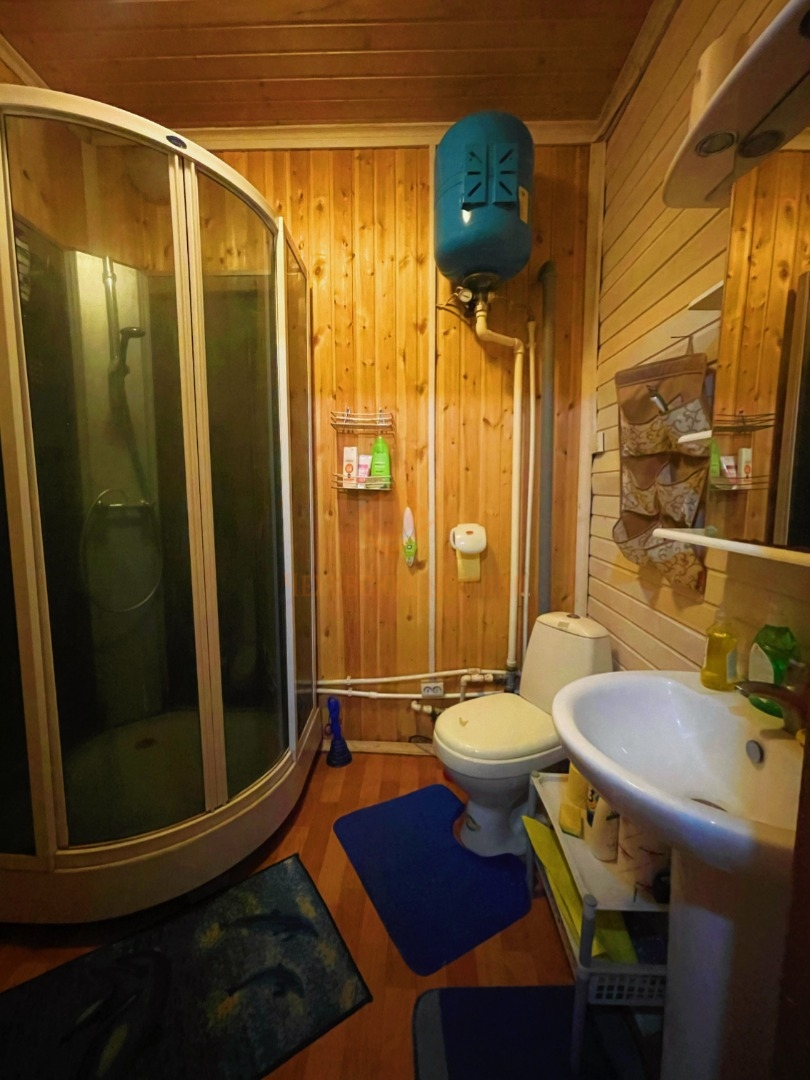 На первом этаже расположены прихожая, санузел, кухня и гостиная с рабочим камином – идеальное место для семейных вечеров. На втором этаже находятся две просторные комнаты, где можно организовать уютные спальни. Отопление осуществляется при помощи печи и инфракрасных обогревателей, что гарантирует тепло и уют.