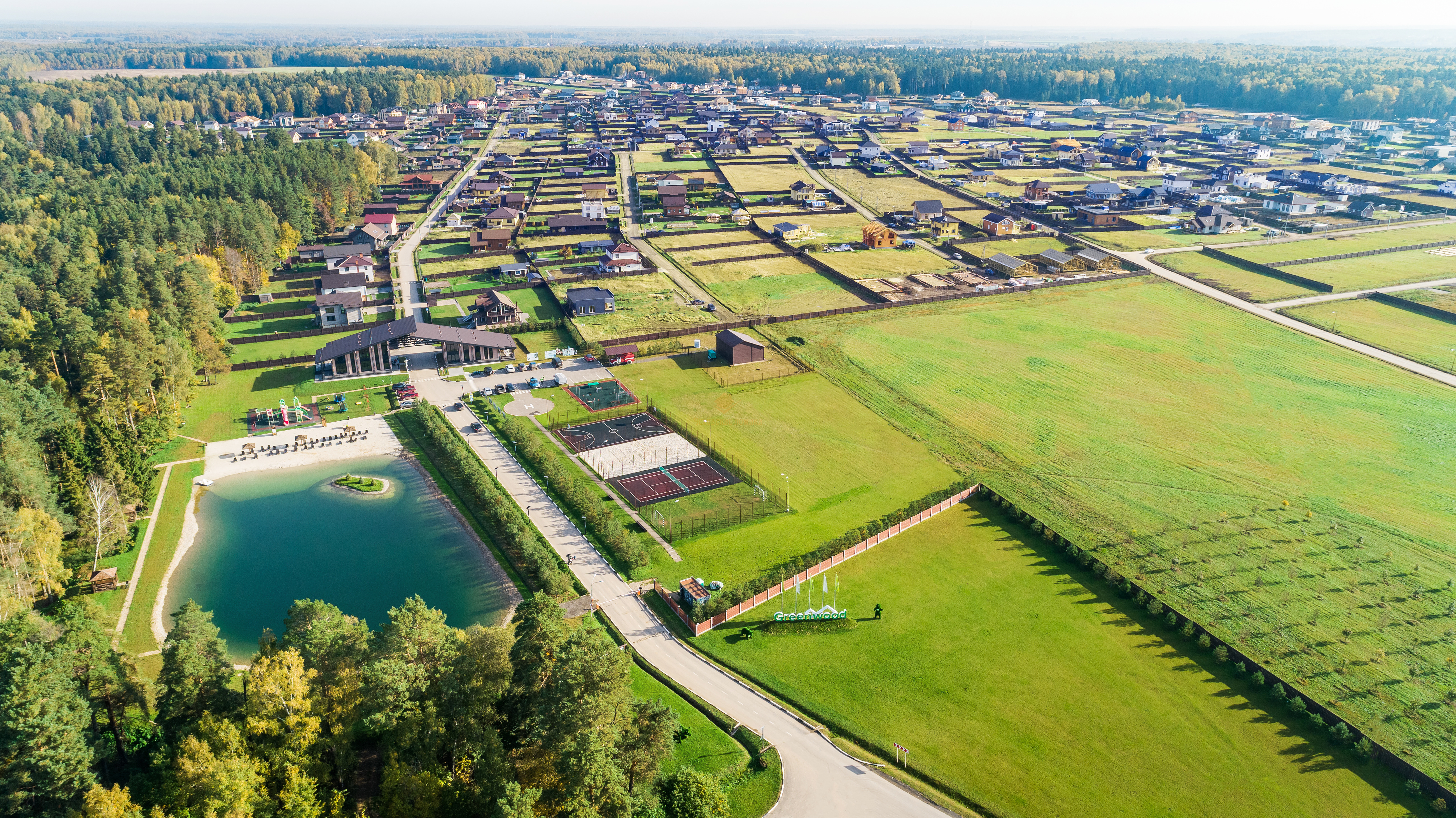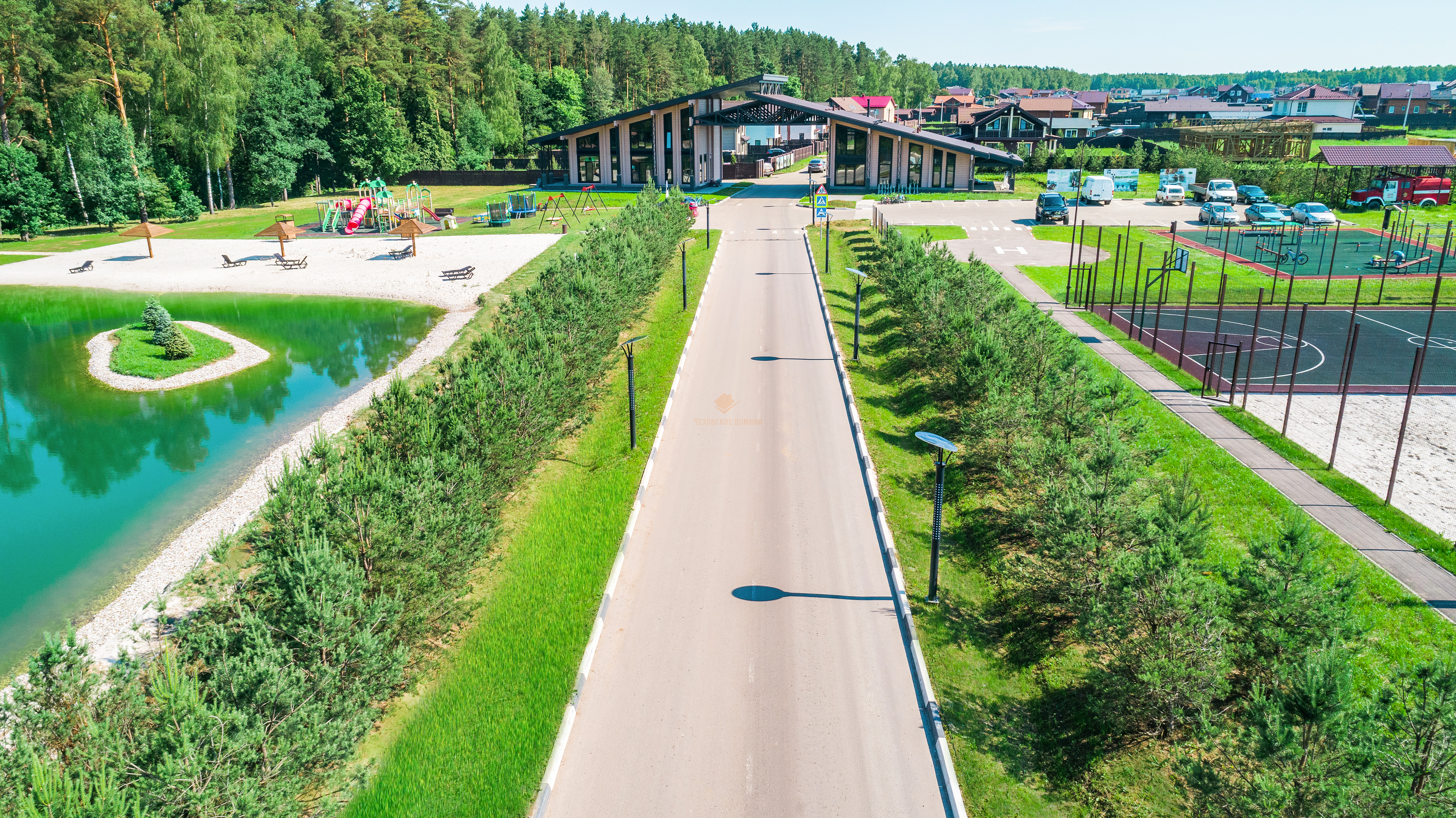 🏊♂️ Роскошь коттеджного поселка усиливается наличием своего озера для купания с оборудованным пляжем, очаровательного лесного массива и развитой инфраструктурой: спортивные и детские площадки, места для отдыха и рыбной ловли, беседки для BBQ.